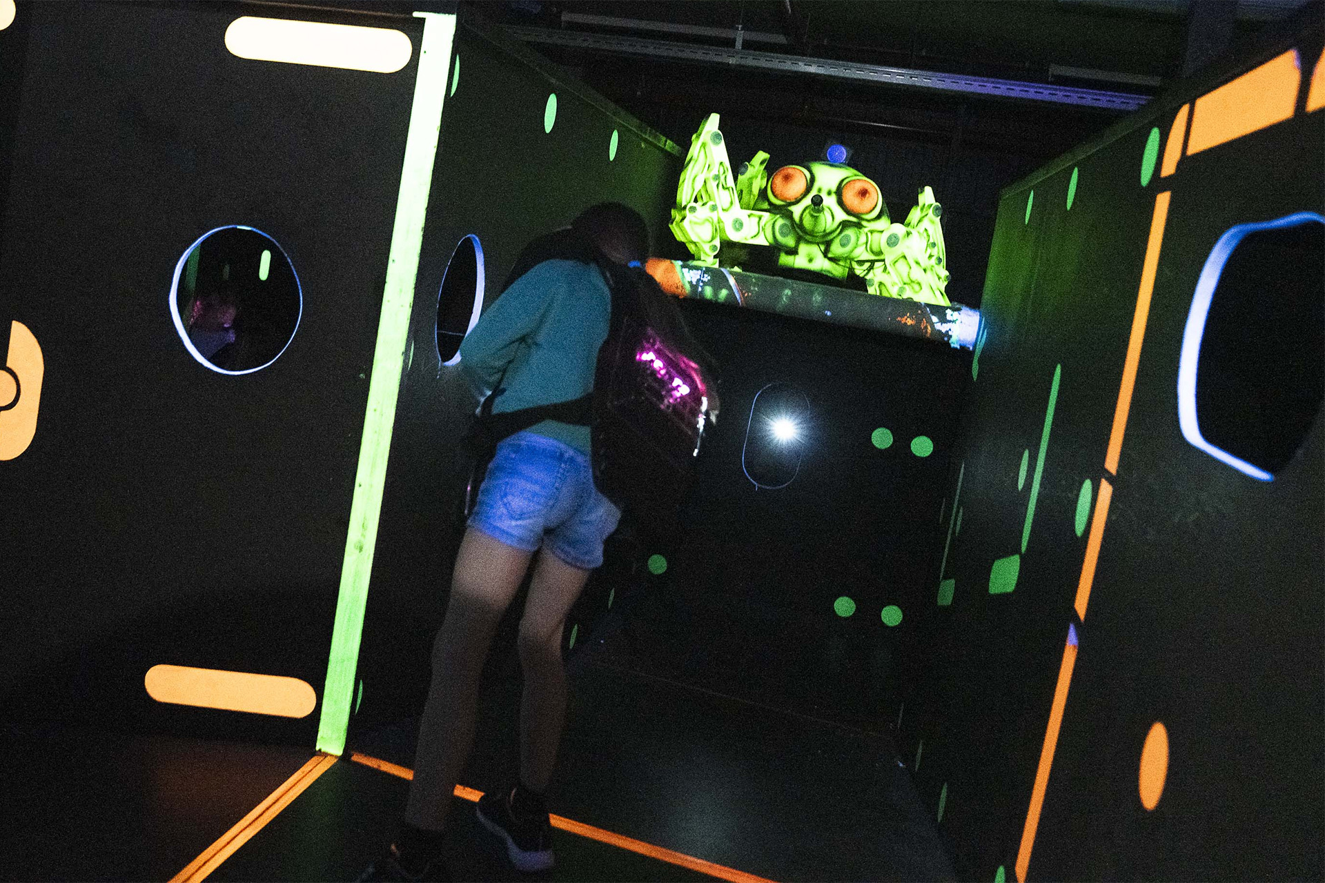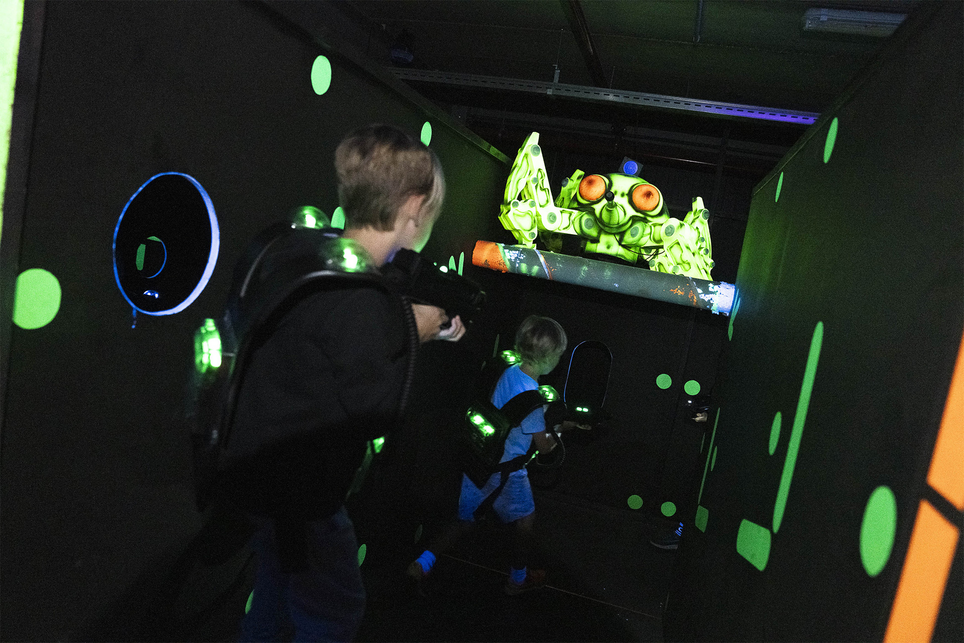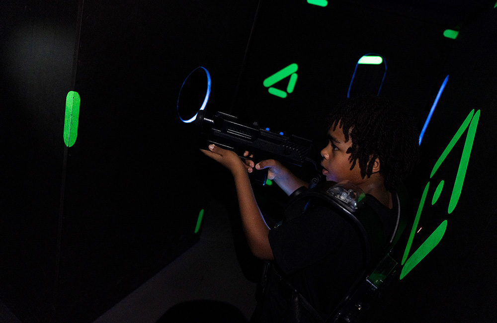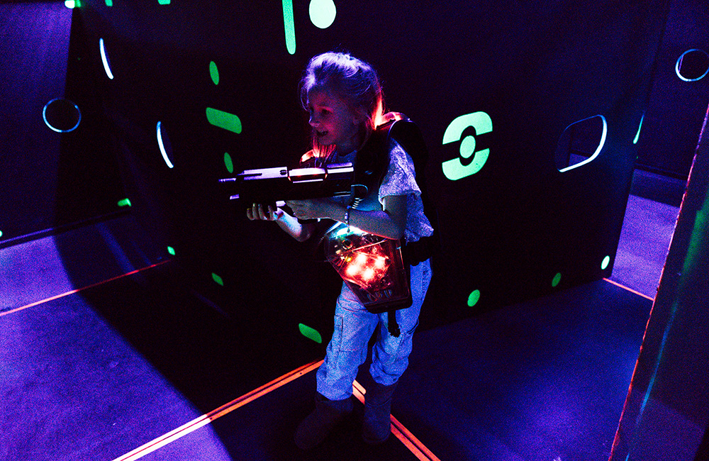 Hoe goed schieten jouw kinderen nog wanneer plots alles donker wordt en de blacklights en rookmachines worden geactiveerd? Onze lasershoot-arena is een perfecte training van de zintuigen.